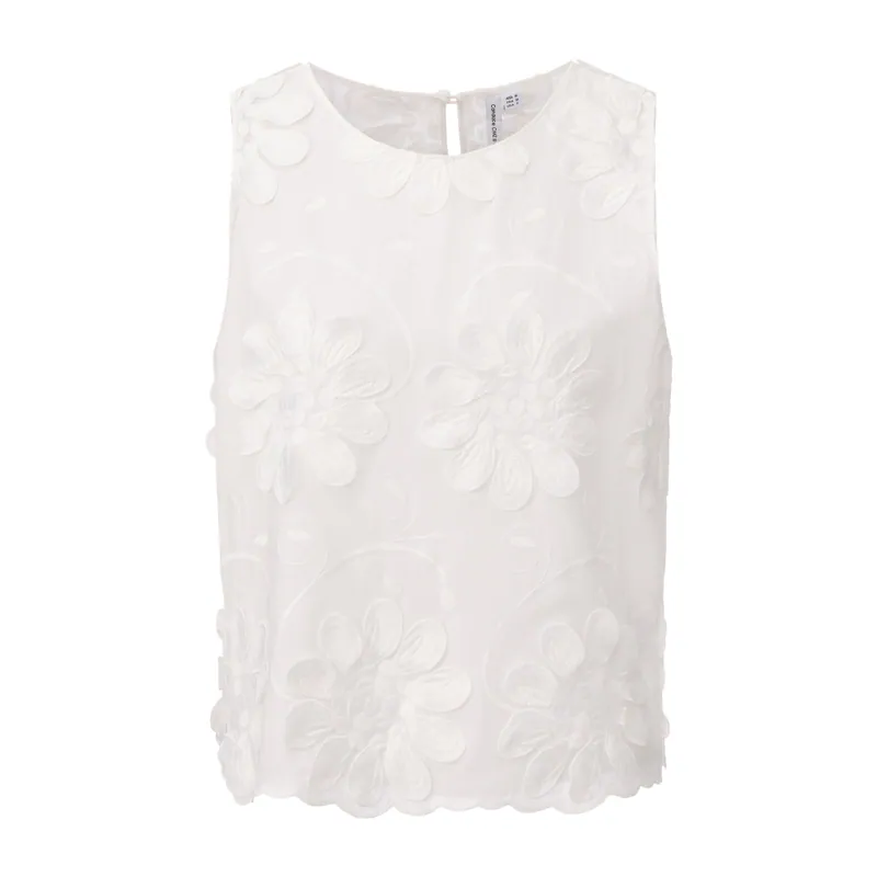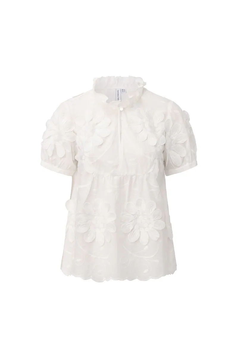 白色立體花影上衣