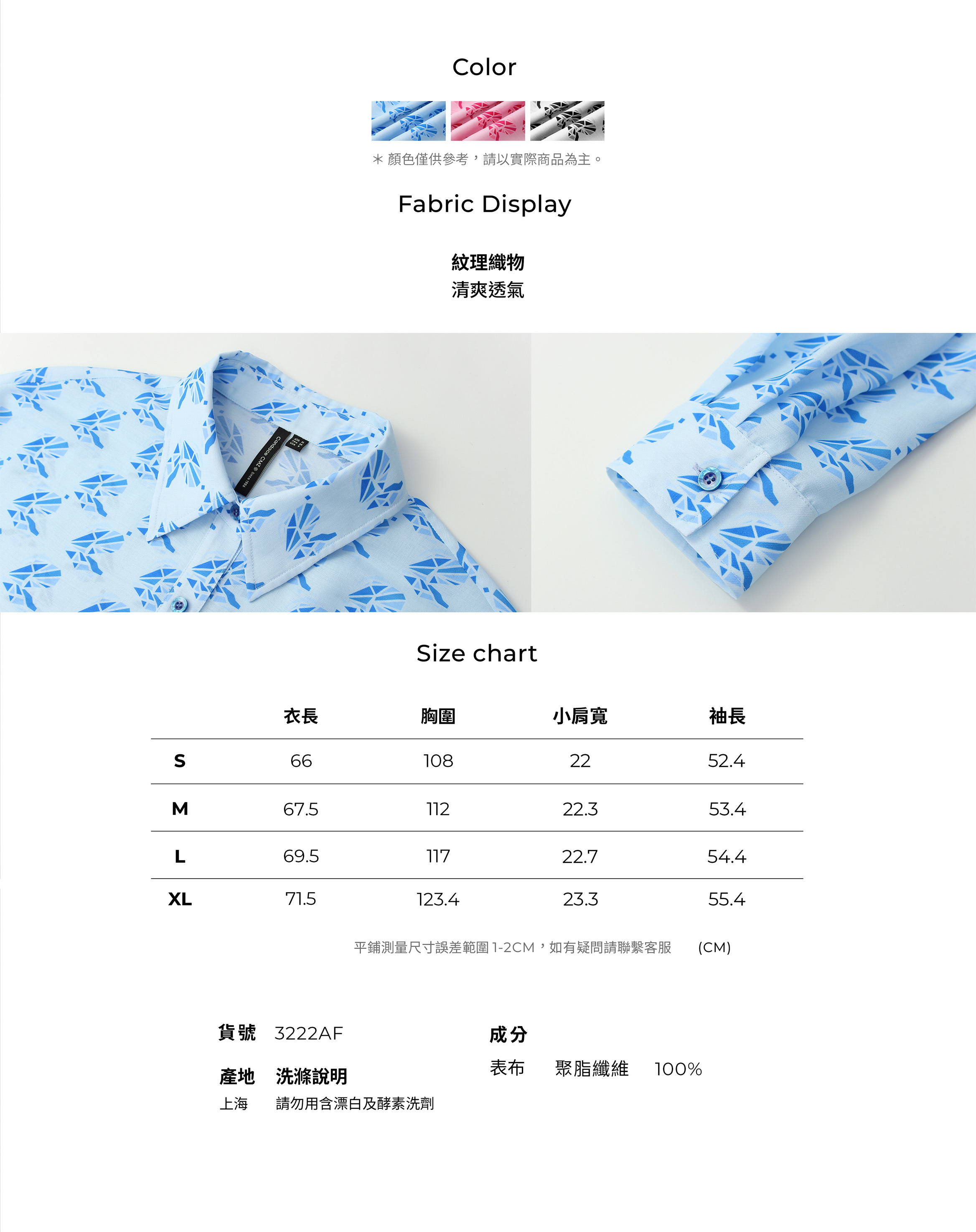 3222AF 個性時尚落肩長袖經典版襯衫