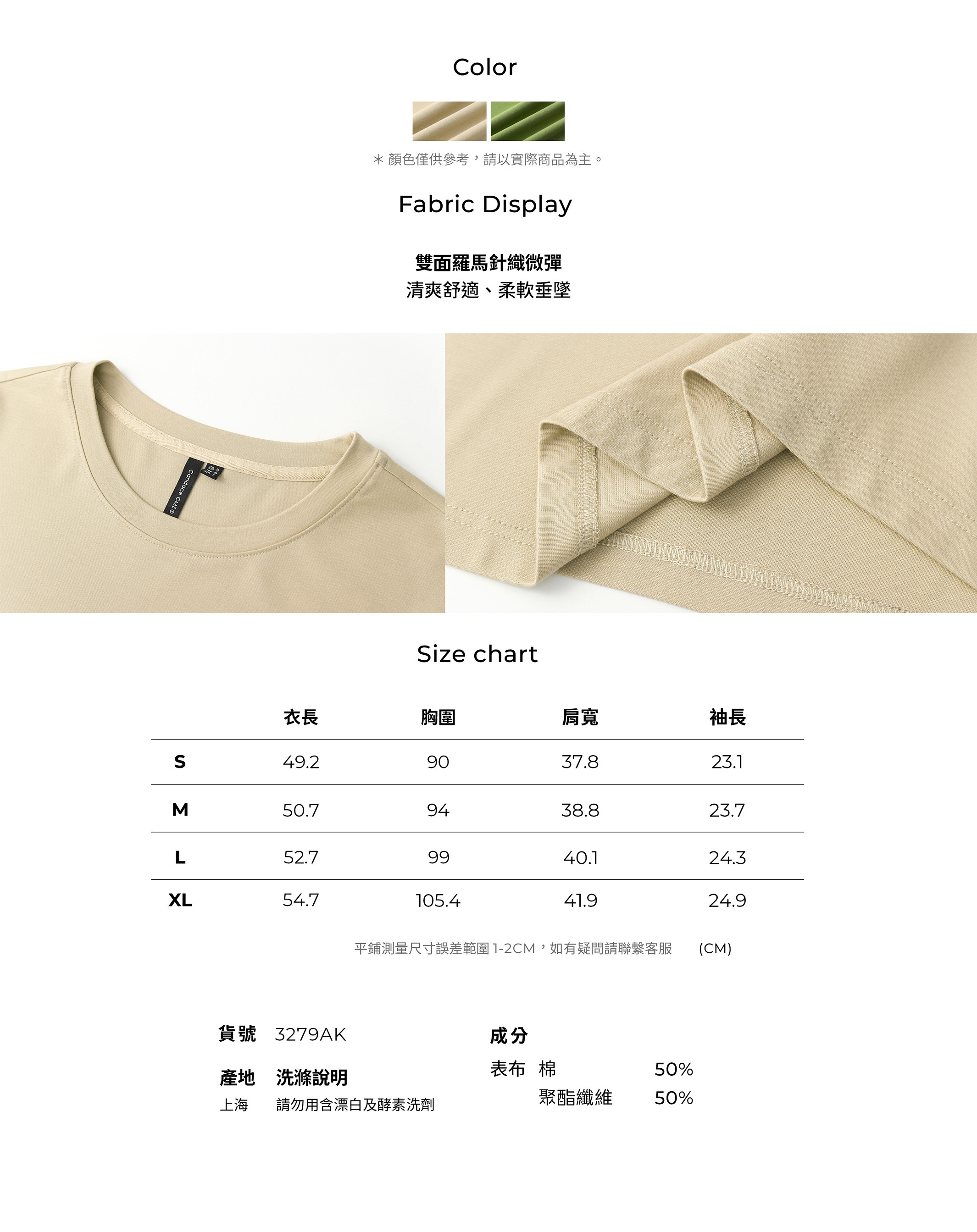 3279AK 五分袖隨性高知風短T