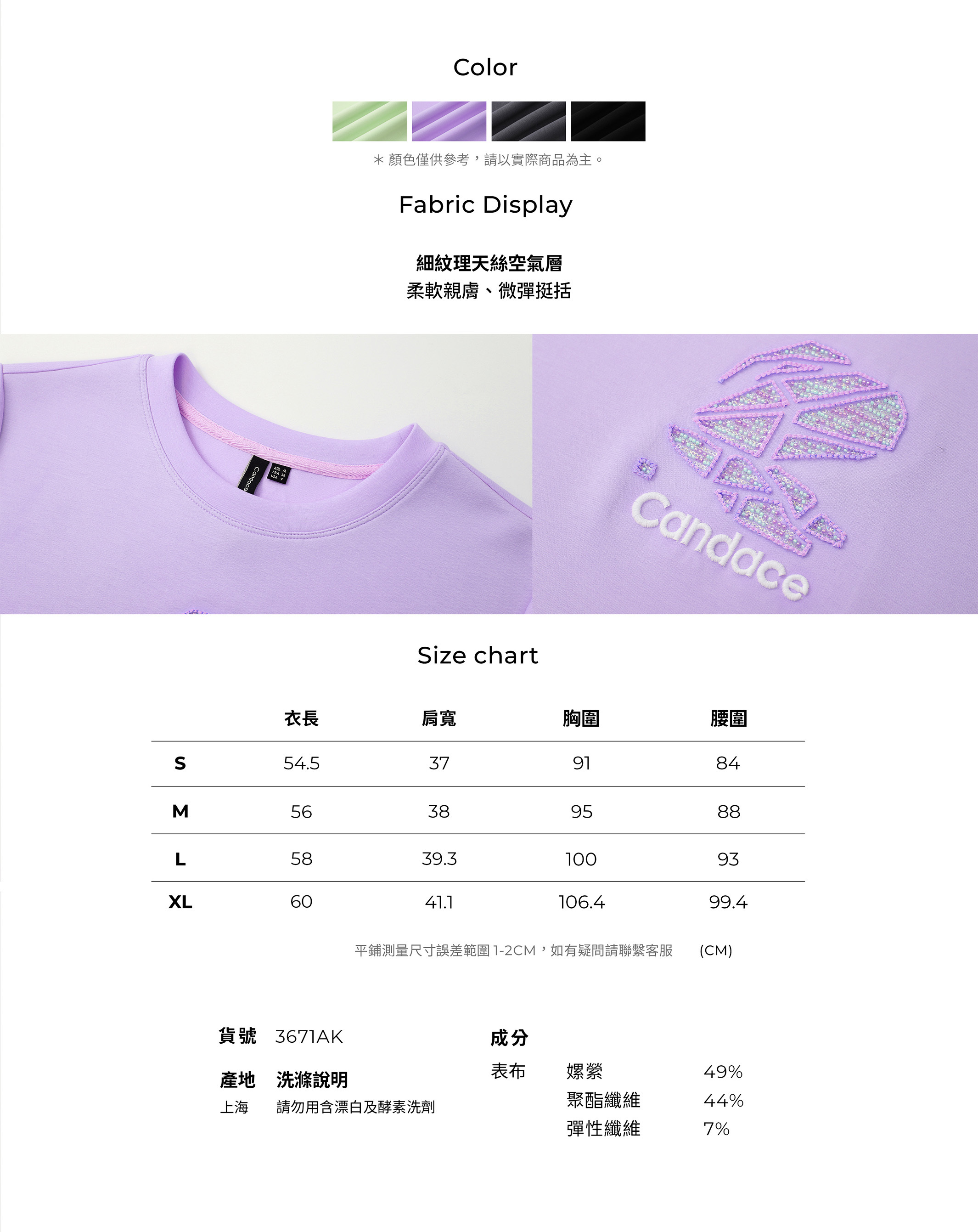 3671AK 優雅圓領三分袖精緻百搭棉 T