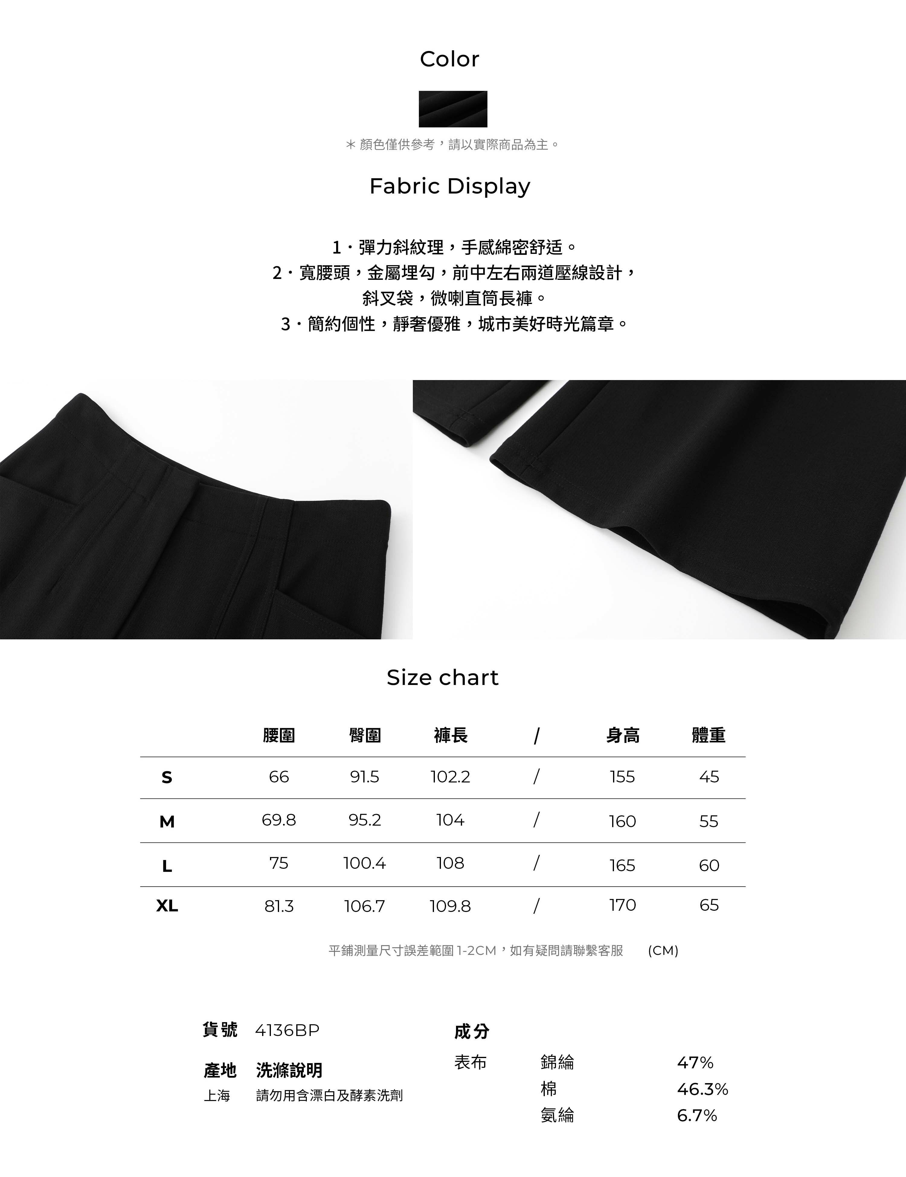 4136BP 微喇直筒長褲