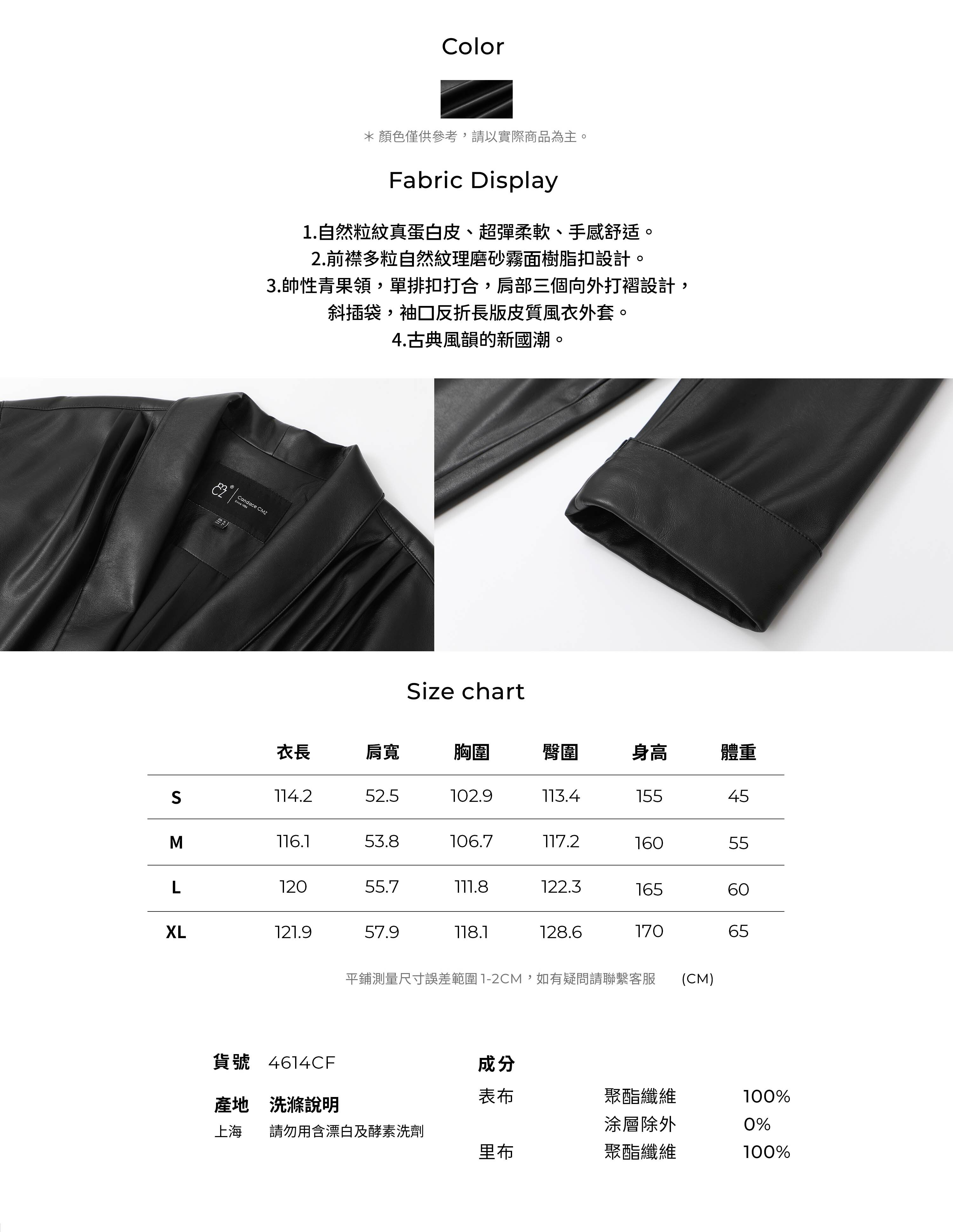 4614CF 長版皮質風衣外套