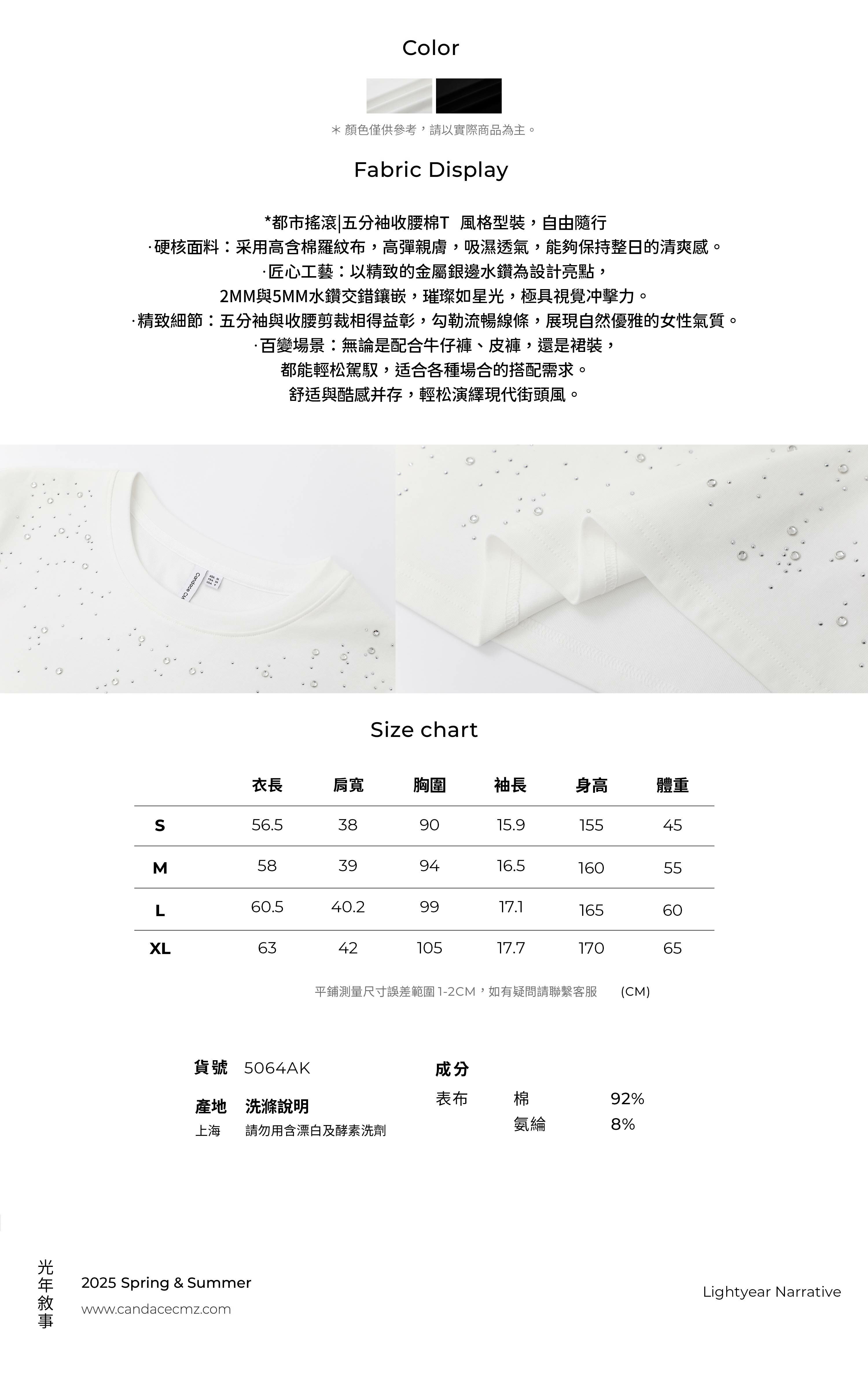 5064AK 五分袖收腰棉T